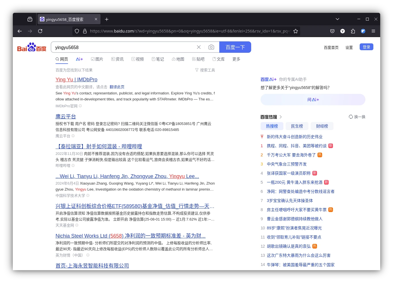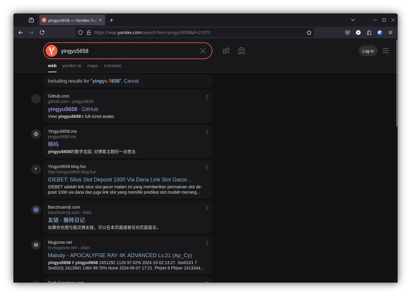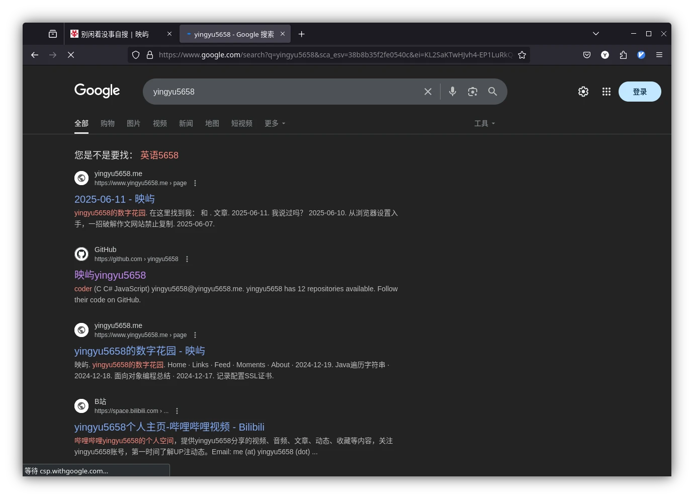 Github页面比较靠前,前一阵子在Bing上几乎搜不到yingyu5658.me